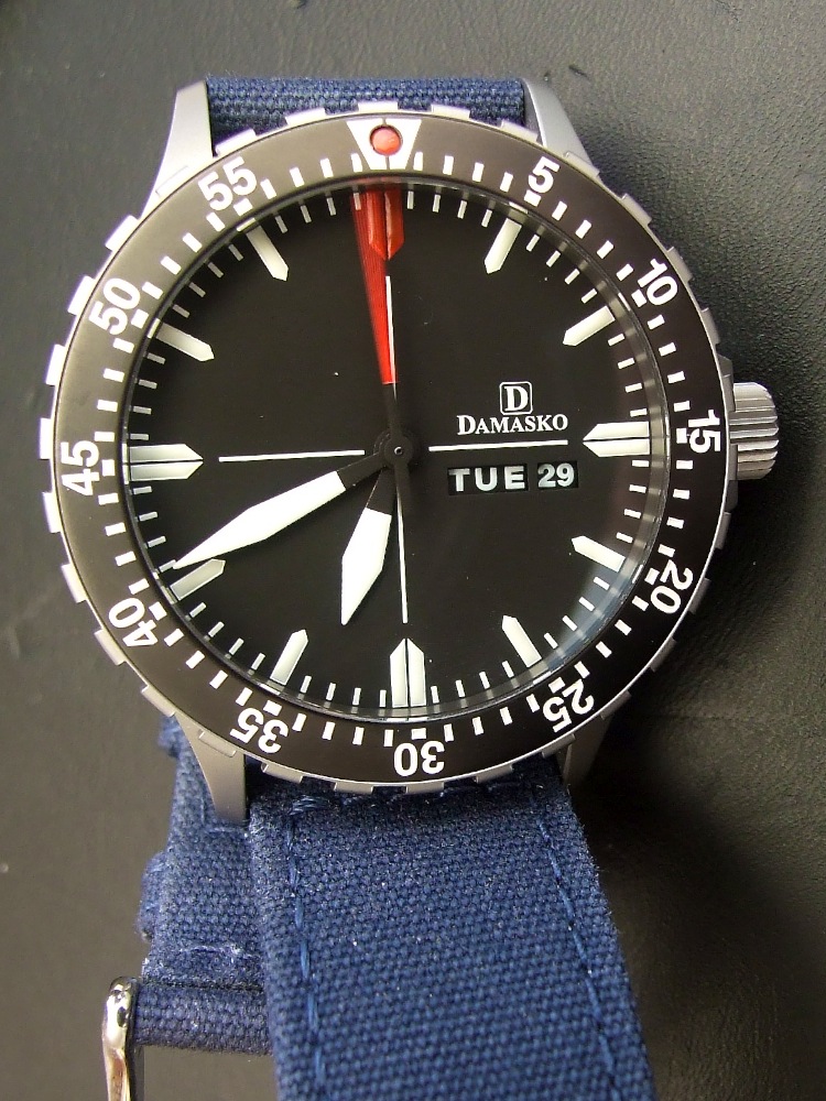 If I feel like a beater, the Helson Shark Diver 40 grey does a great job and has better lume to boot. So the Damasko was sitting idle.