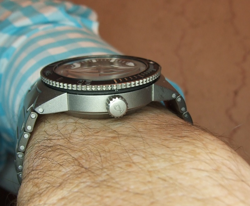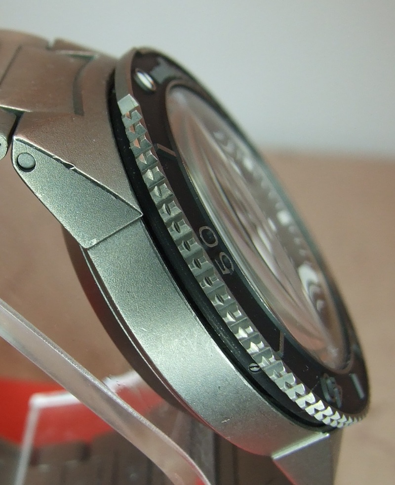 The bezel is a recent replacement, indicating to me that a) the hardened titanium case holds up very well indeed; it's not much more worn than the 3-year-old 3568 in steel and b) the bezel is less durable.