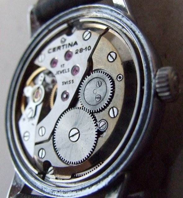 An example manual wind movement, which are visually simpler. This is a Certina Bristol 230.