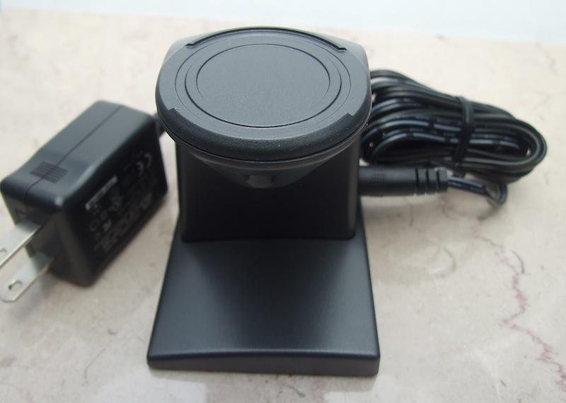 That's an inductive charger, a neat bit of technology that lets you recharge the watch without a normal metal-to-metal connection. You rest the watch on top of it: