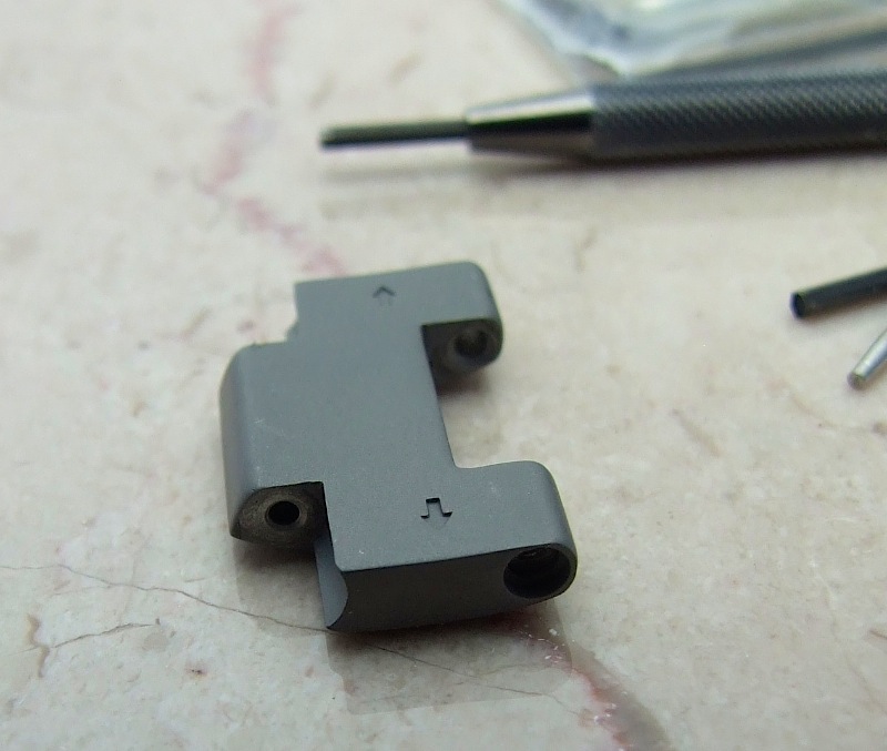 Non-tapering 24mm bracelet, 5mm thick. flip lock with Push button release and 3 Micro adjustments. The links and pins are remarkably well made and engineered, with hex-key heads and a gasket on each to keep them in place: