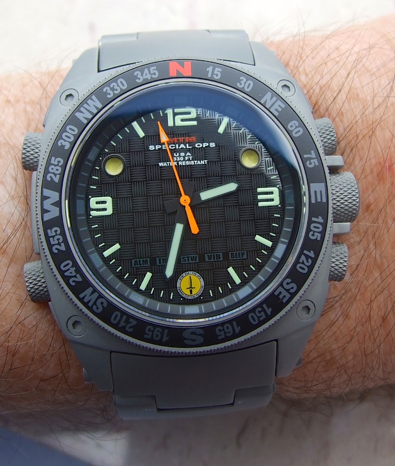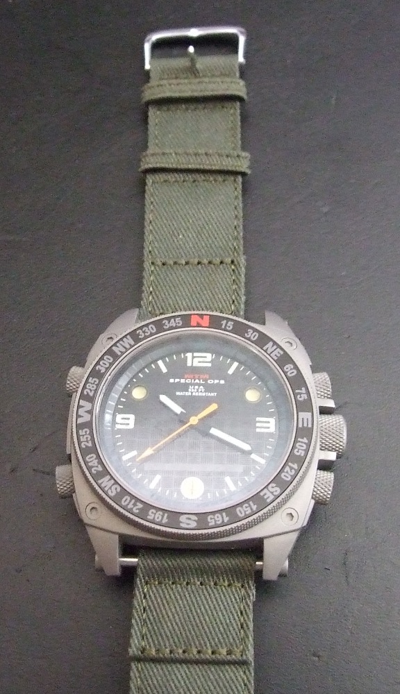 which was loaned to my by MTM for review here. I had initially assumed it was Yet Another Military-Themed Watch. Luminox, Traser, Chase-Durer, and the like. It's a popular genre but not one I gravitate to, as I'm not military or police and just haven't seen many I liked. This one, however, has some neat tricks and is worth a closer look. Let's dive in.