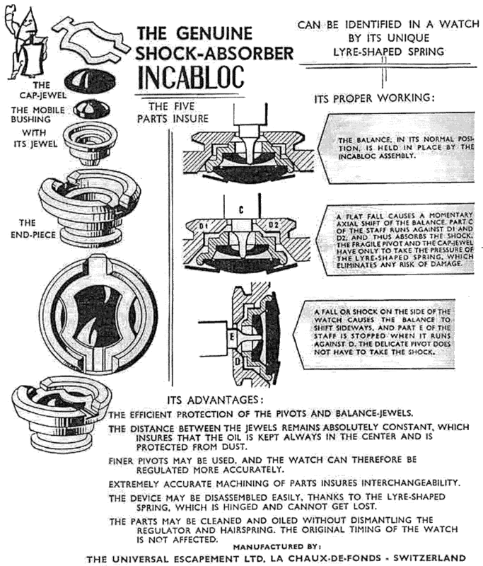 One of the most valuable innovations in watch design is shock protection for the balance staff. This key part is the one most likely to break upon impact, which until the 1930's or so was a real problem. The basic idea is to house the jewel in a circumferential spring mount, so that it can flex and absorb the energy.