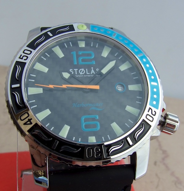 A dress diver, with strong hints of IWC and Ulysse Nardin in the design. Great lume, poor daytime legibility, good price, eye-catching design.